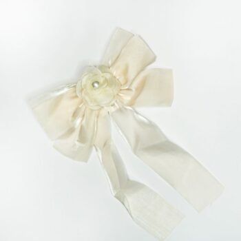 Add a touch of timeless charm to your hairstyle with this beautifully crafted bow made from soft, shimmering organza. Designed with a flowing, petal-like silhouette and finished with a delicate central cluster of pearls and crystals, it’s the perfect accessory for special occasions or elevating everyday looks.