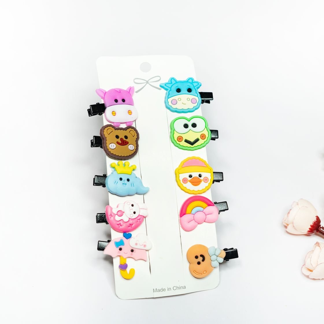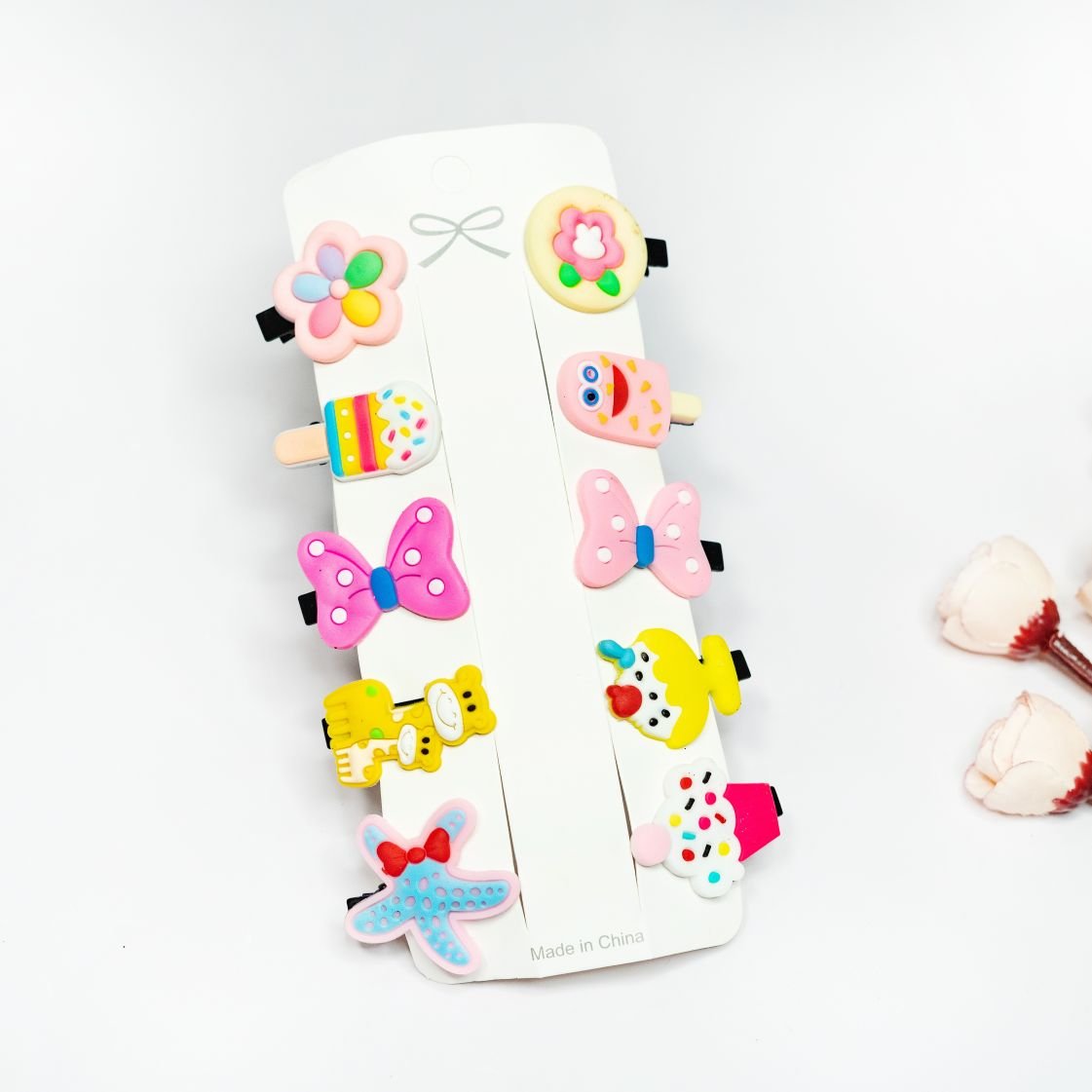 🧷 Colorful Hair Clips & Tic-Tacs – easy to snap in place, with adorable designs like hearts, stars, bows & more.