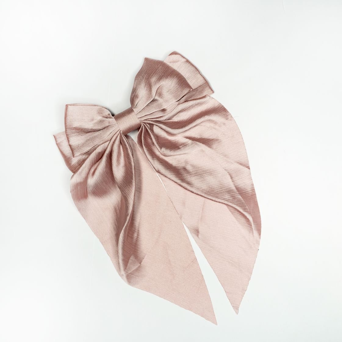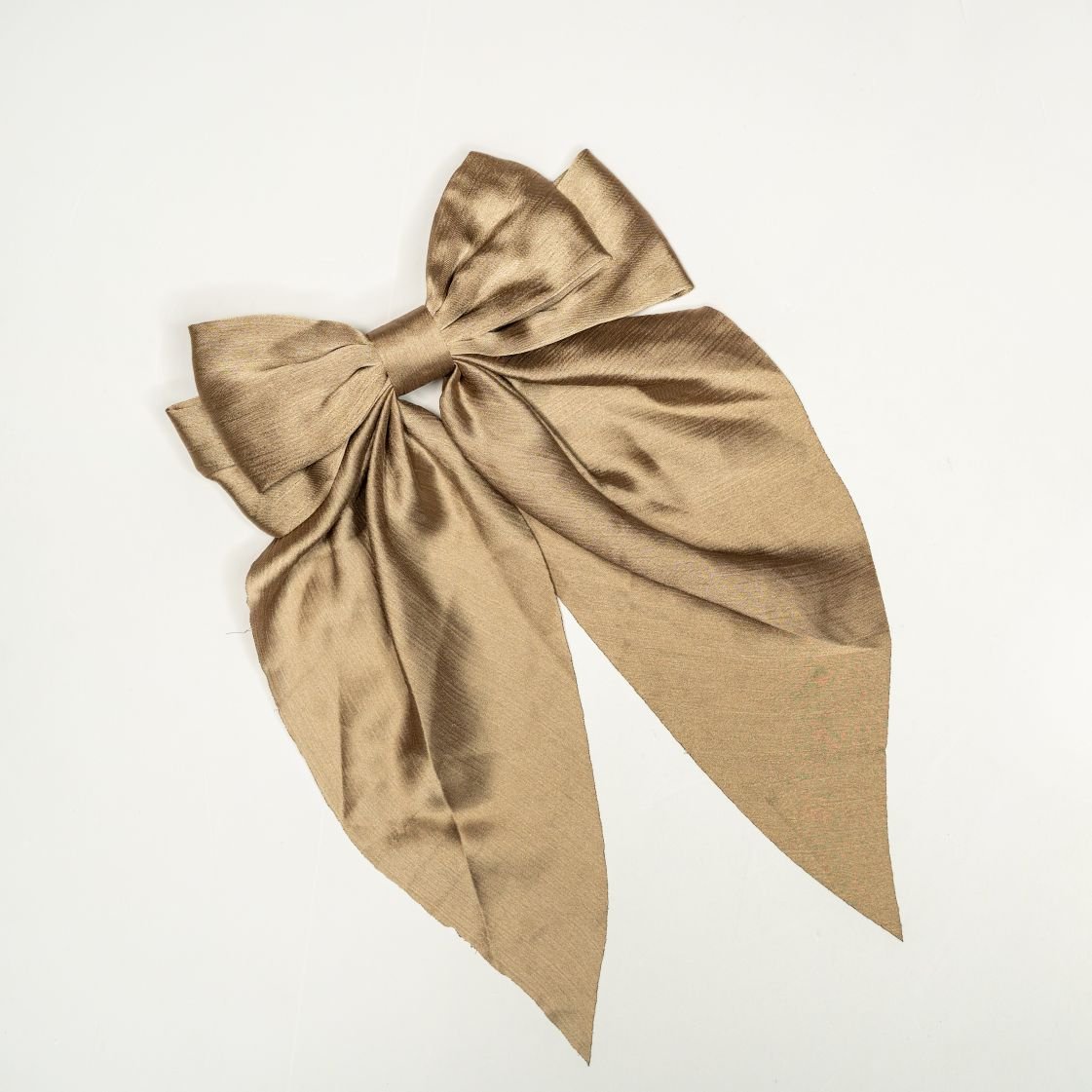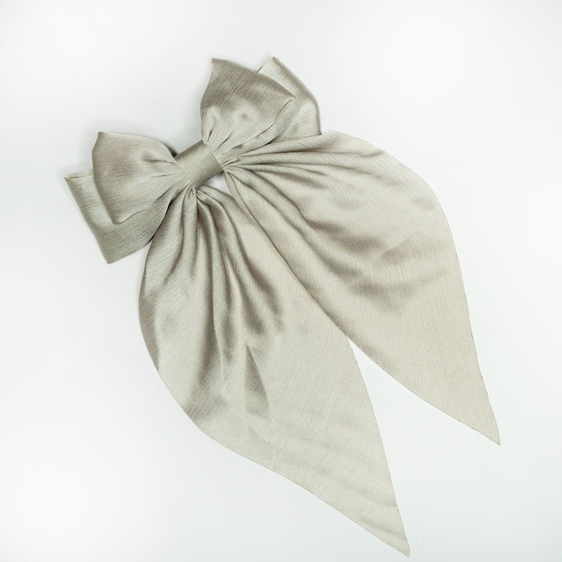 Elevate your hairstyle with this Satin Hair Bow, crafted from high-quality satin for a smooth, luxurious finish. The elegant shape and flowing tails add a touch of charm and sophistication, perfect for both everyday wear and special occasions.