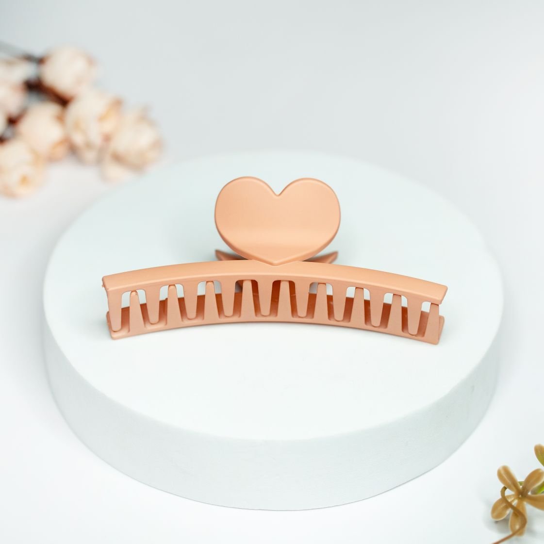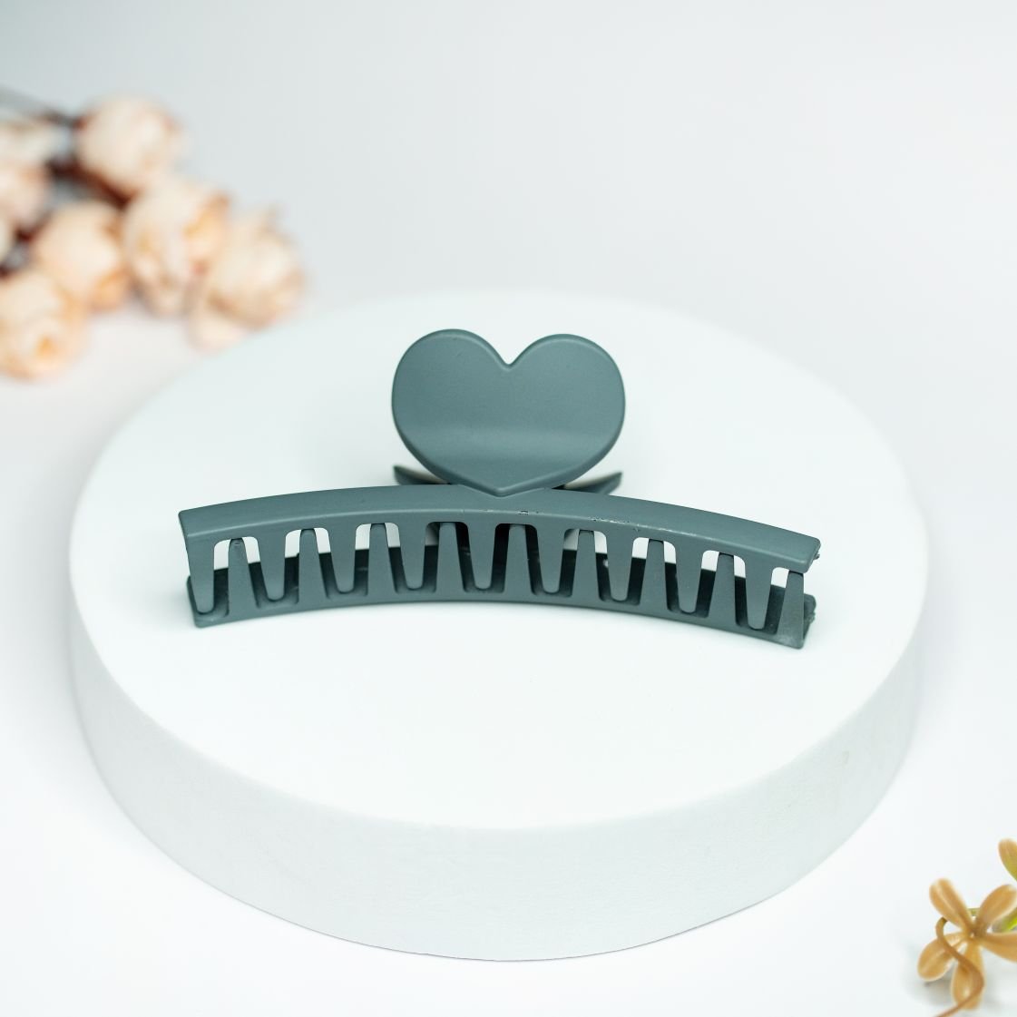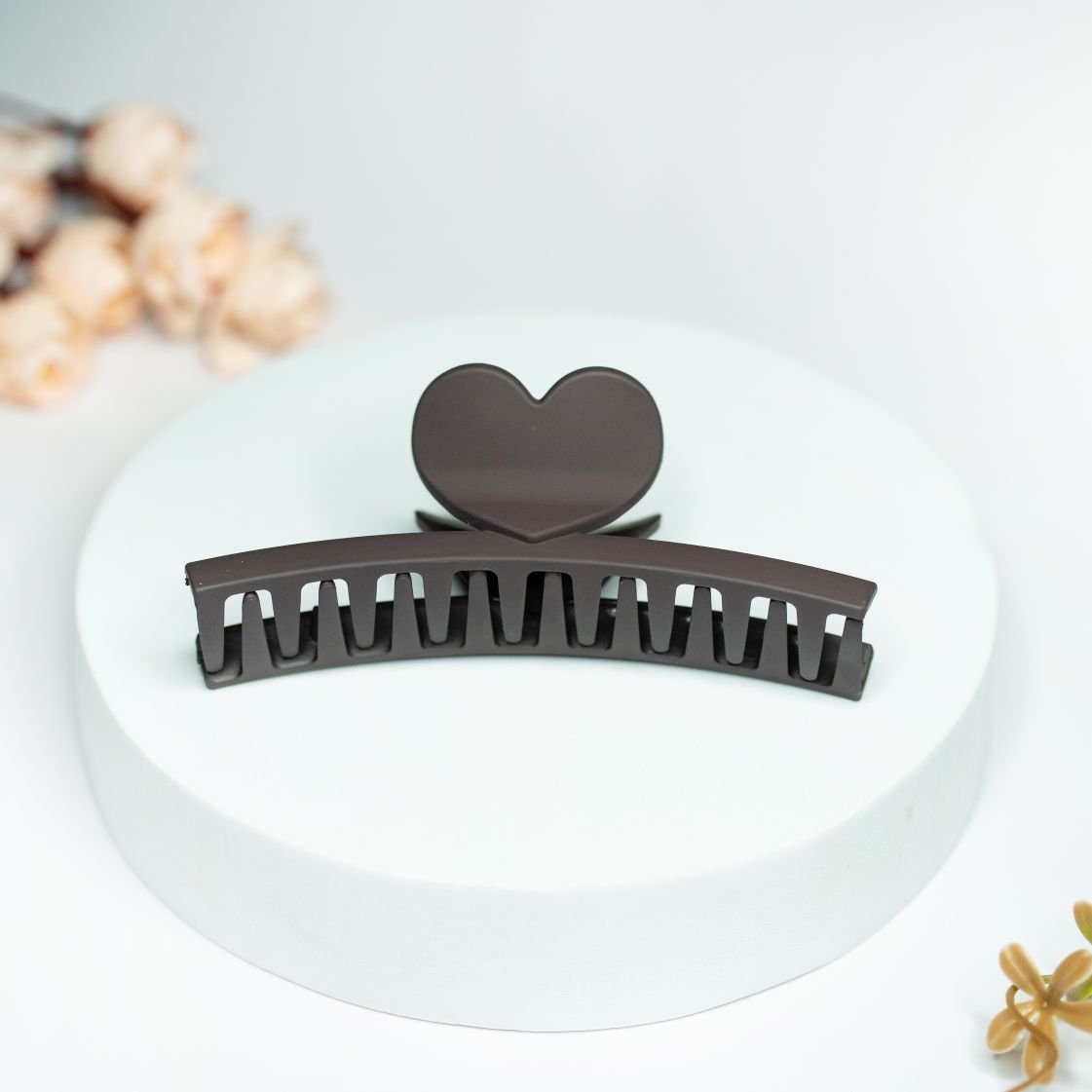 Stylish and sturdy heart-accented matte claws that combine charm with functionality—ideal for romantic looks and secure all-day wear. Available in elegant solid colors, perfect for all hair types and everyday styling.