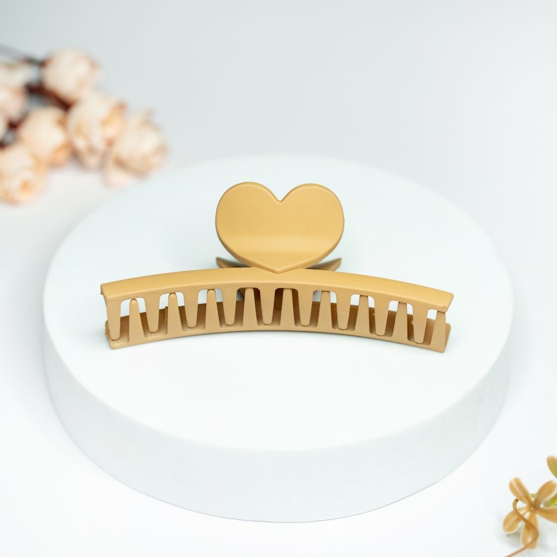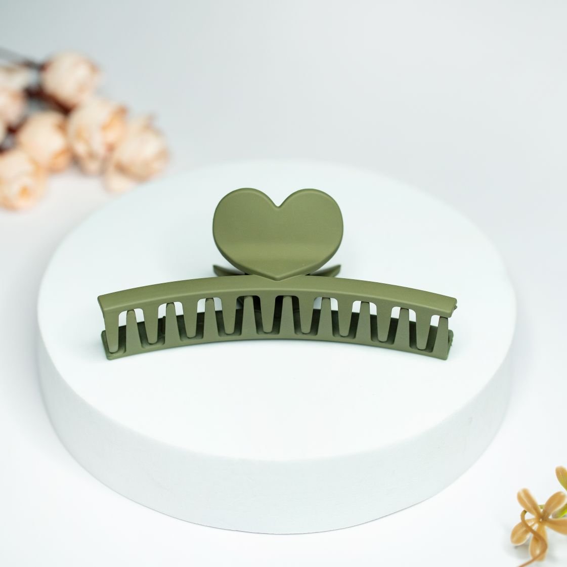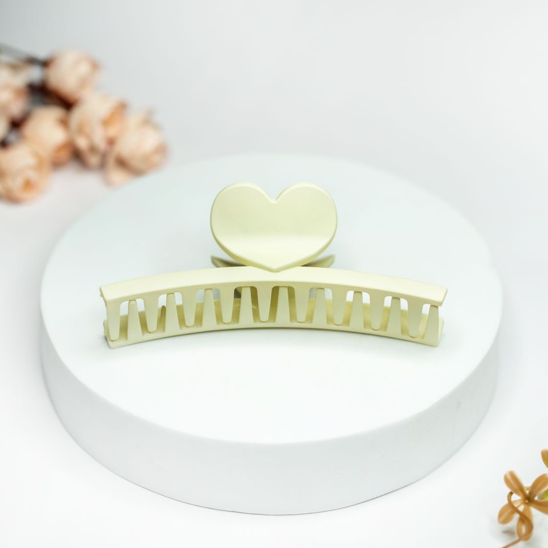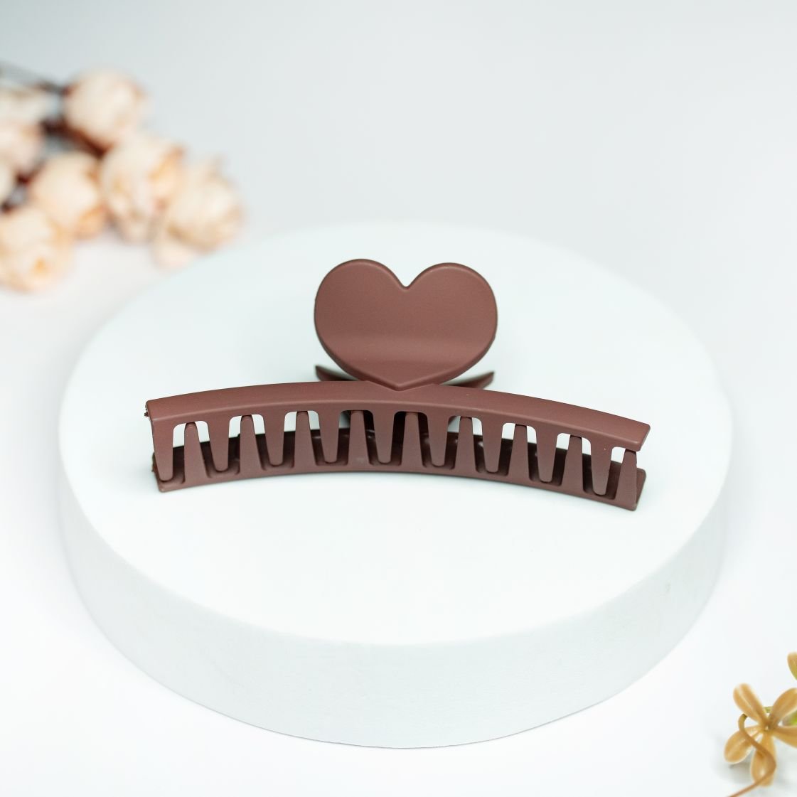 Stylish and sturdy heart-accented matte claws that combine charm with functionality—ideal for romantic looks and secure all-day wear. Available in elegant solid colors, perfect for all hair types and everyday styling.