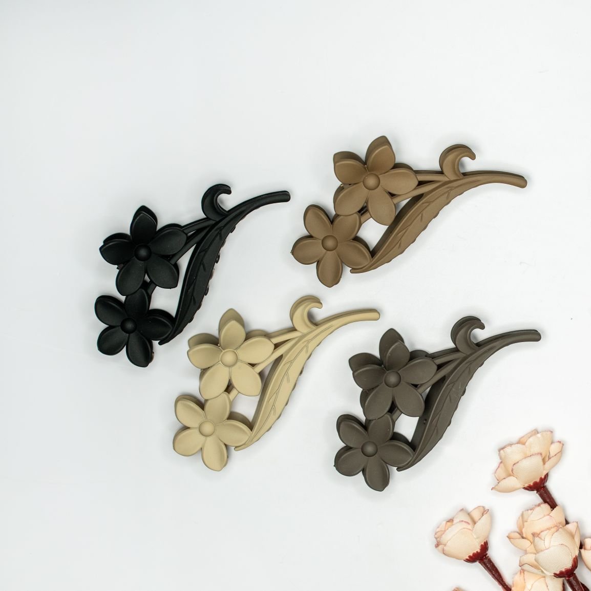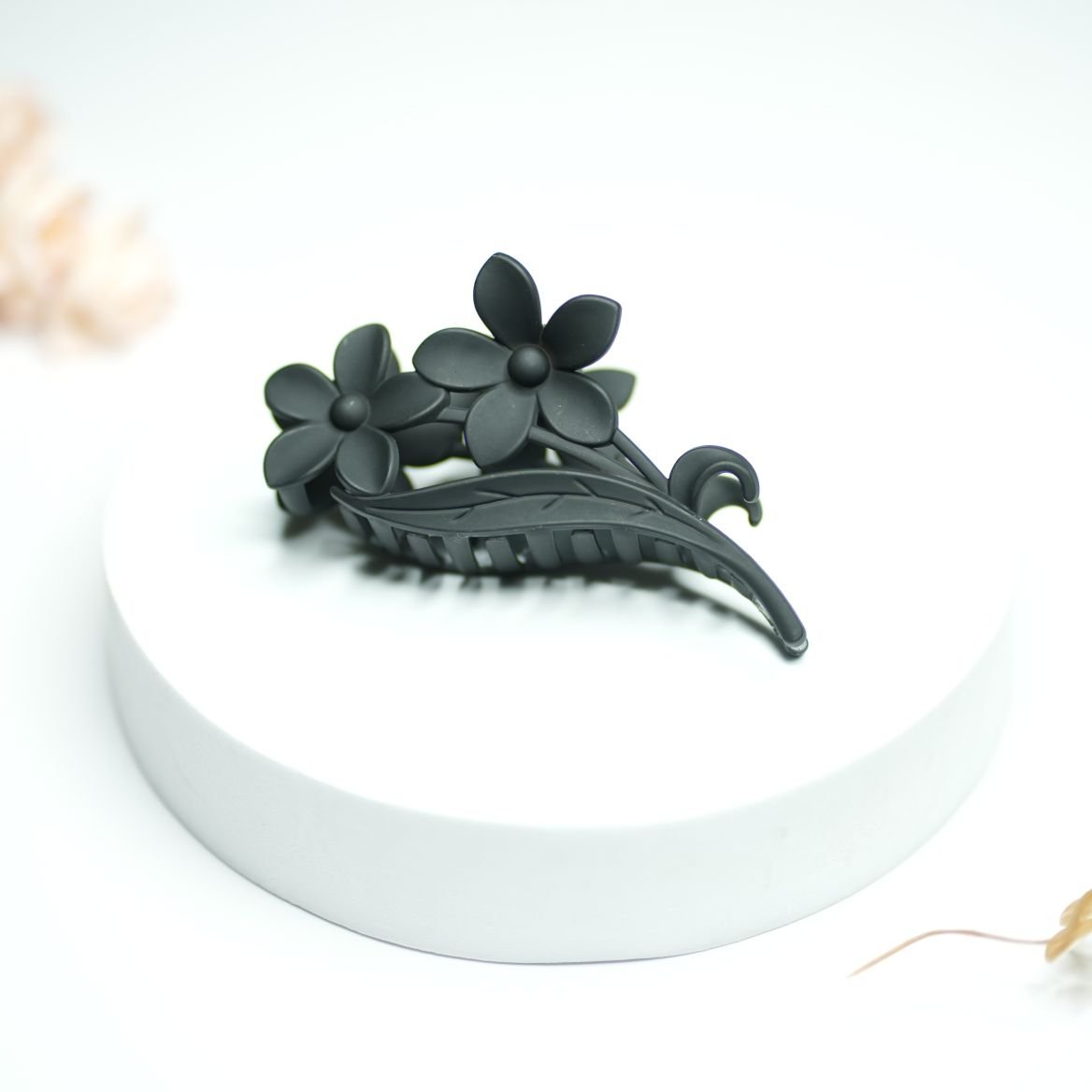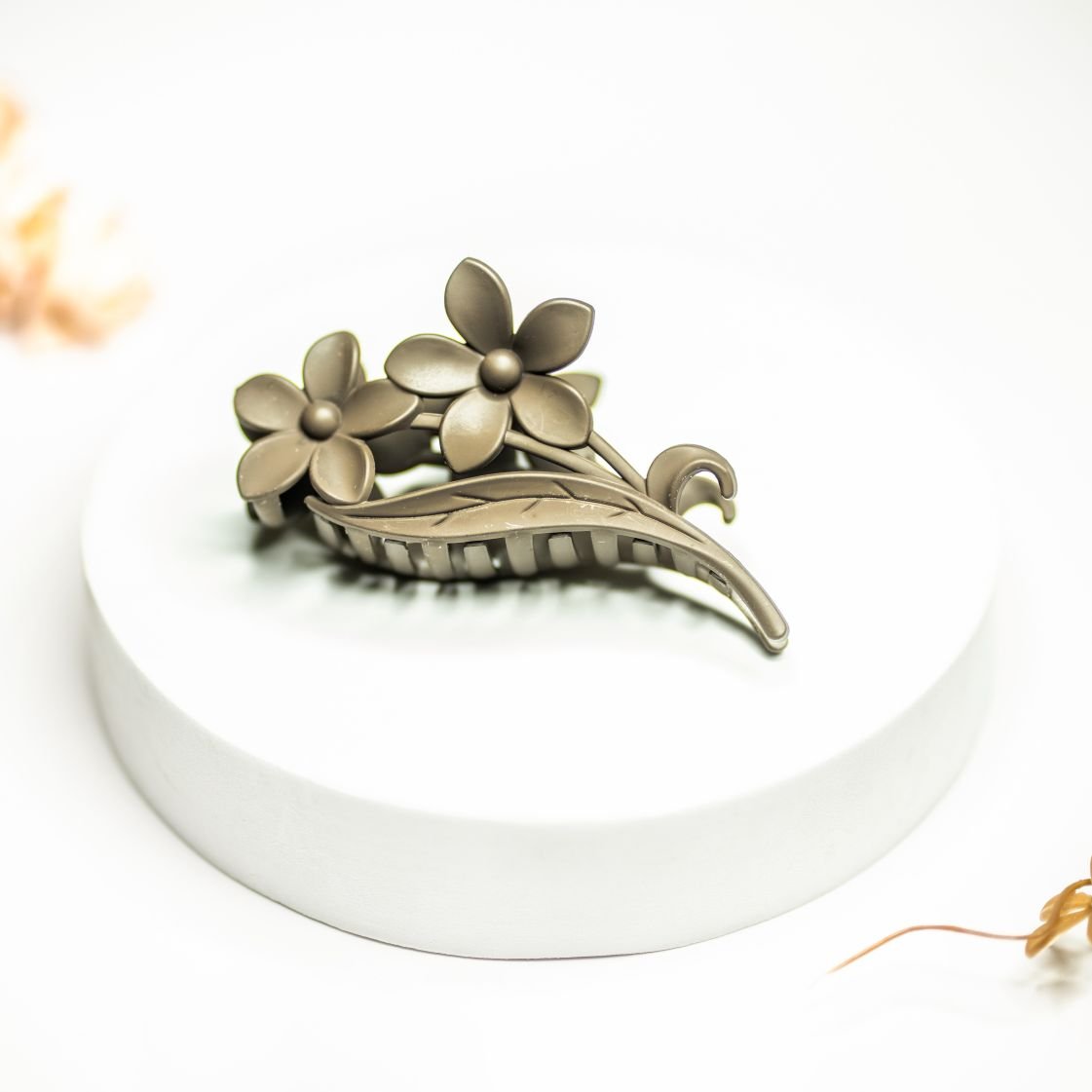 A graceful floral hair claw featuring delicate 3D flowers and leaf detailing. Perfect for everyday styling or adding a touch of charm to your updos with a secure, elegant grip.